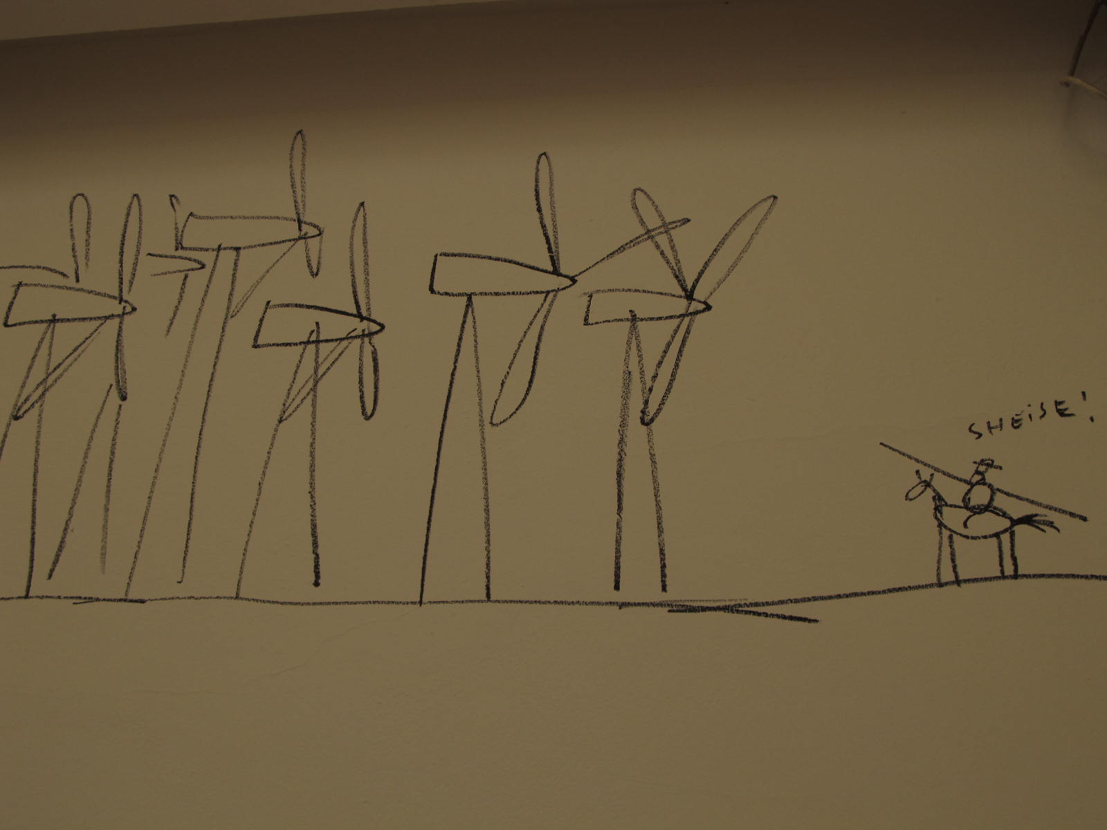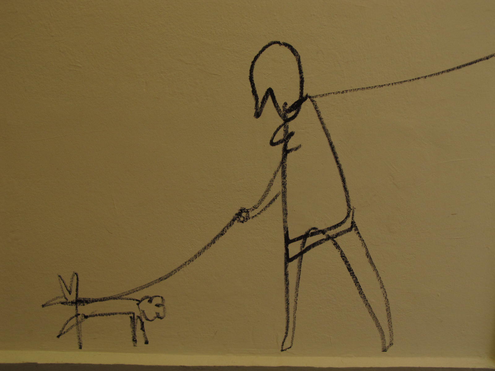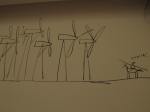 Dan Perjovschi zeichnet mit Filzstift auf Mauerwände. Hier im Künstlerhaus Salzburg, Ringgalerie. Sobald die Ausstellung beendet ist, werden die geschaffenen Zeichnungen übermalt.