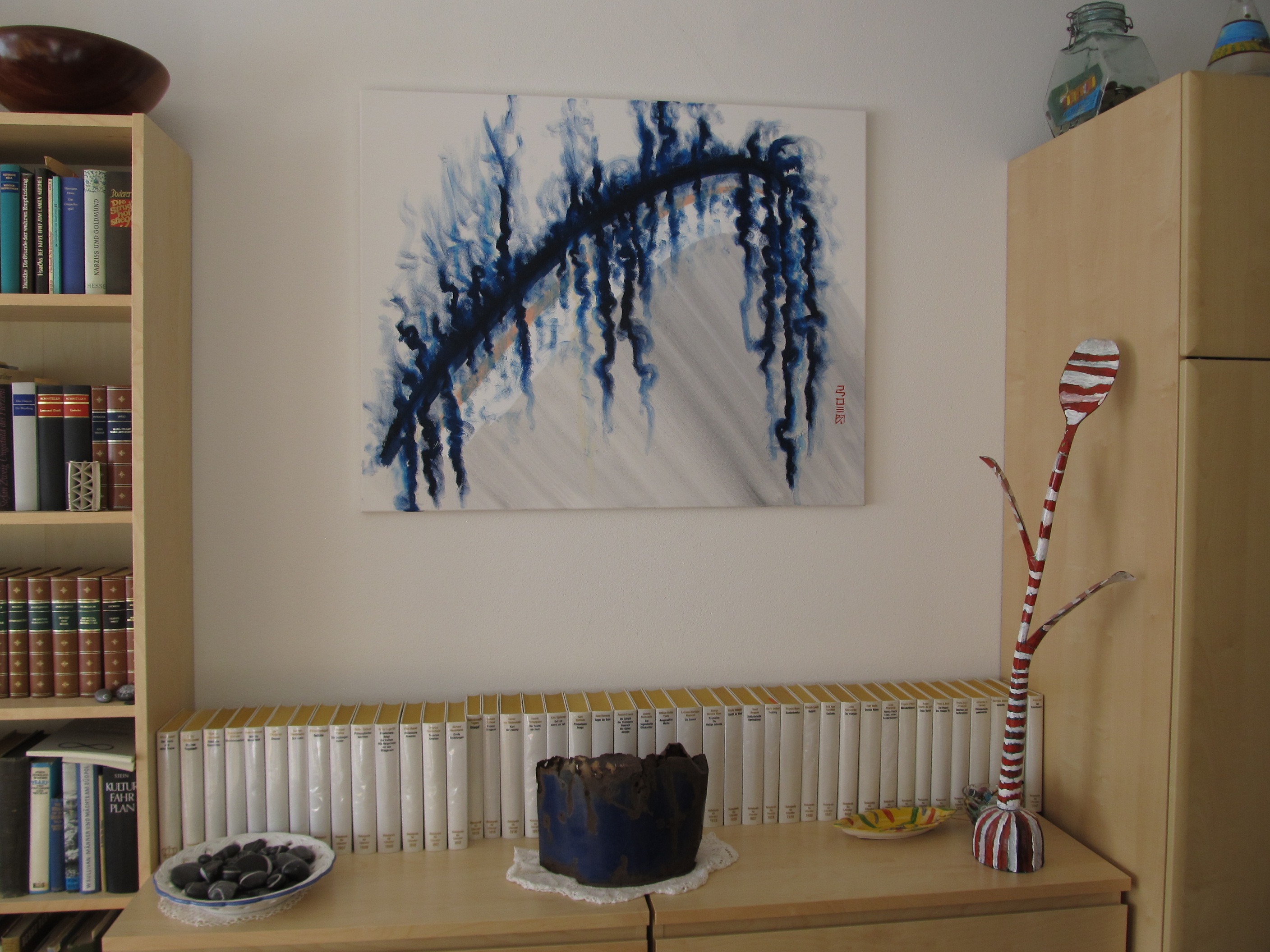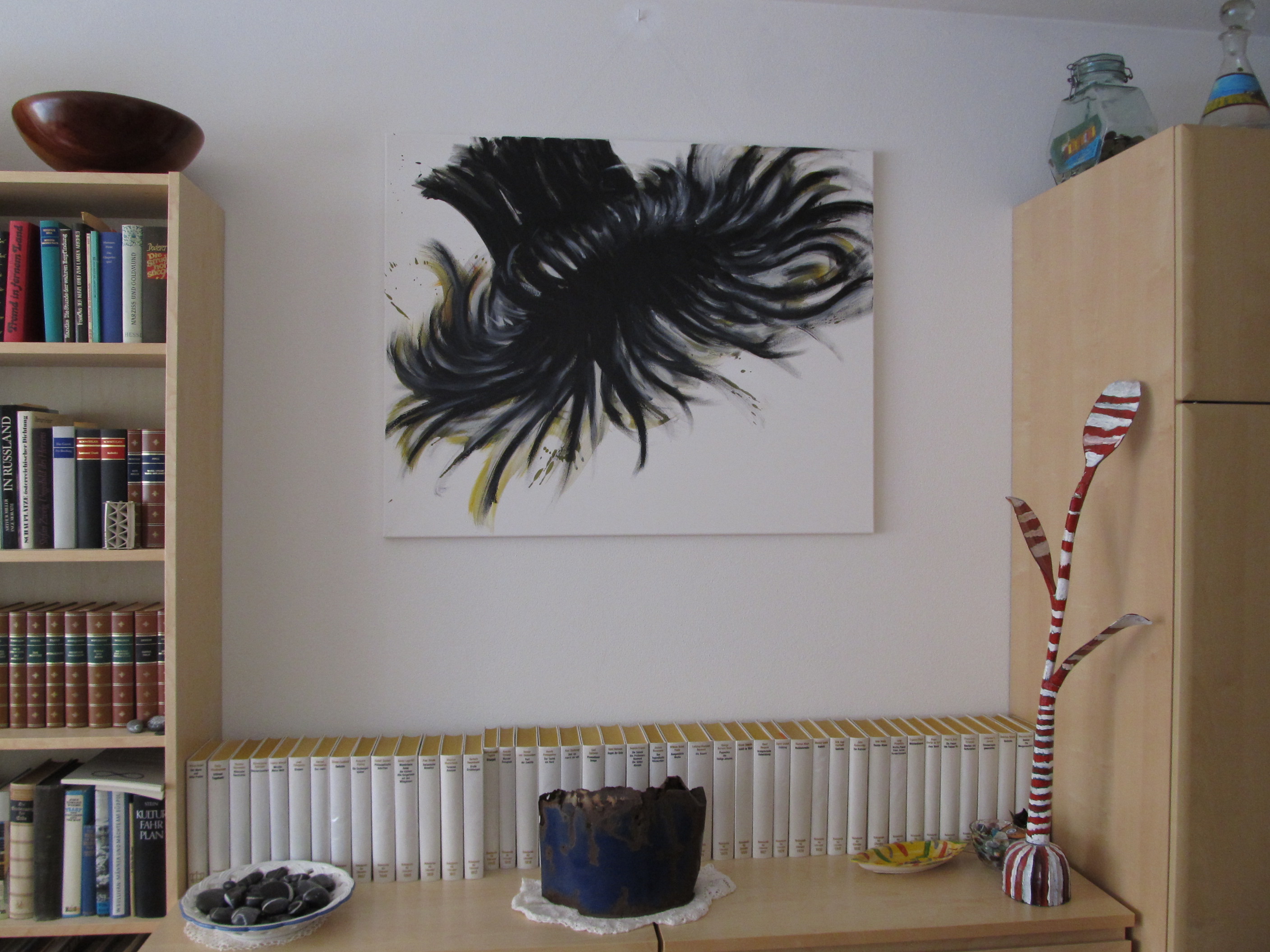 Ja. Das sind echte Kunstwerke die ich mir leisten kann….haha. Auf diesem Wandstück hänge ich immer mein aktuell fertiggestelltes Bild auf – bis ich wieder ein neues gemalt habe.