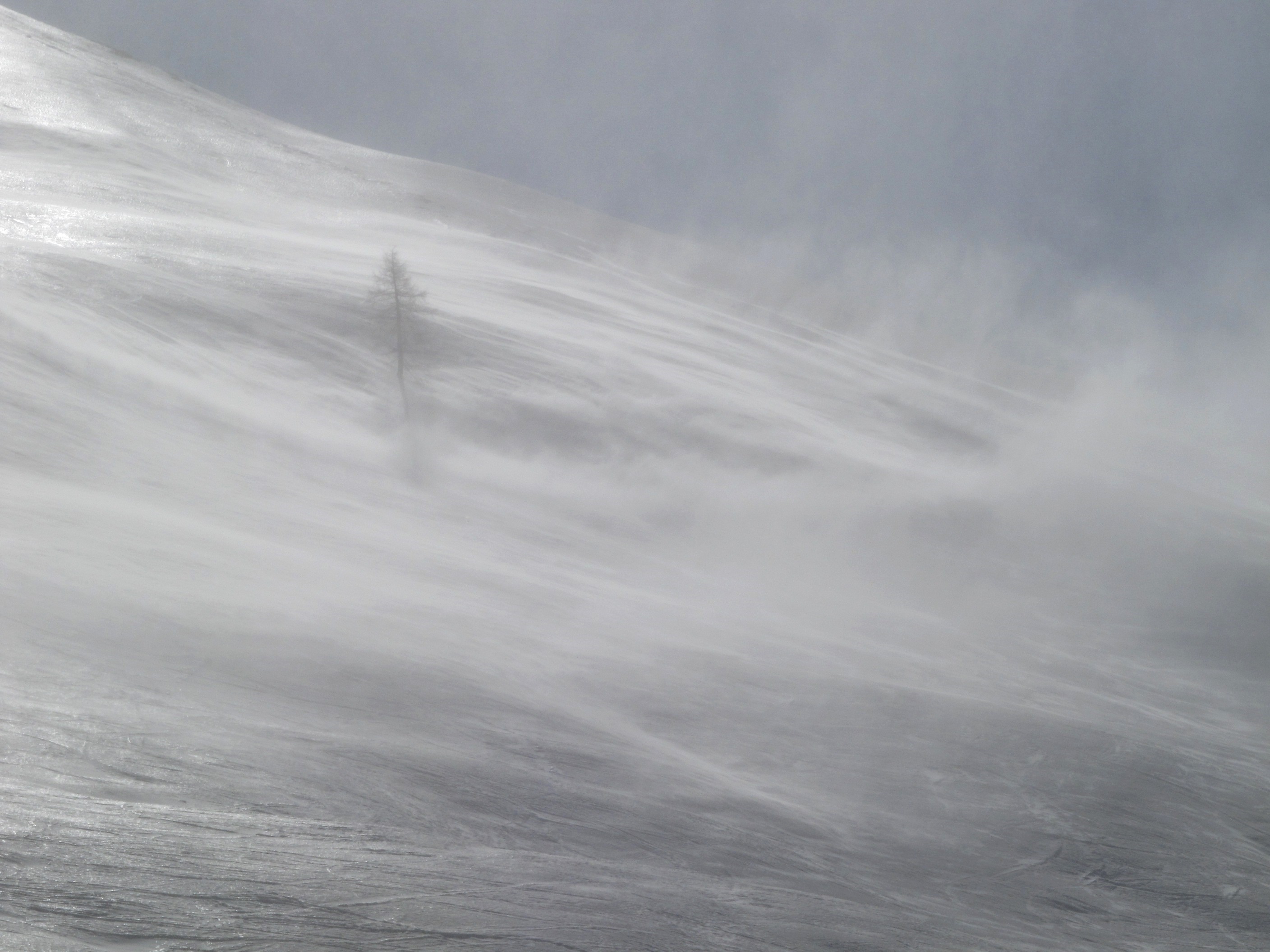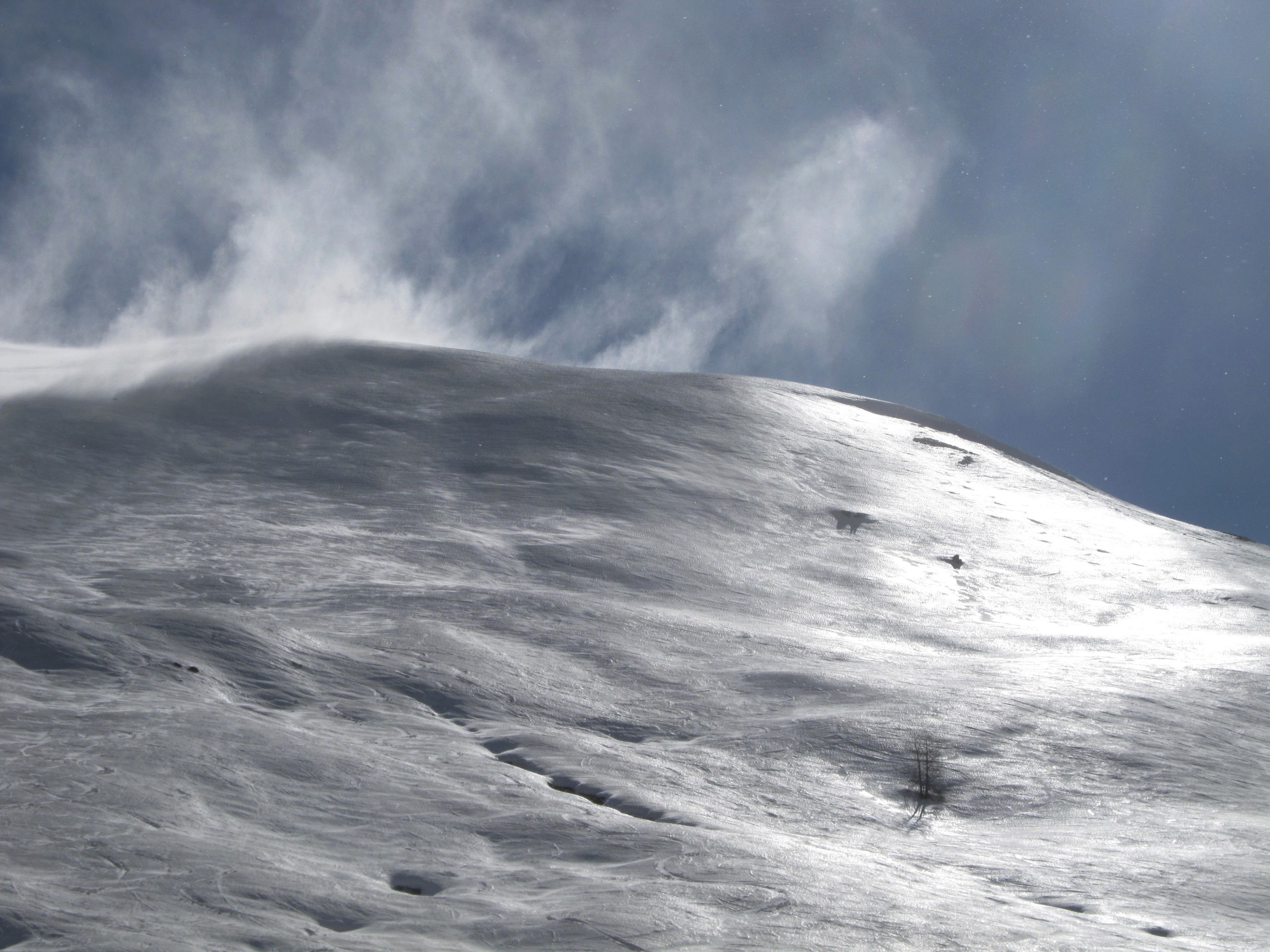 4. Ja, trotz klarem Wetter gab es am Boden Föhnsturm-Böen. Eine Dame hinter mir hat der Sturm einmal ganz frech umgeworfen. Hinter dem Gipfelkreuz geht es einige hundert Meter fast senkrecht in die Tiefe. Da habe ich mich an den Seilen lieber fest angehalten, dass mich der Sturm nicht über die Kante bläst. Danach hatten wir eine wunderbare Firnabfahrt bis ins Tal.