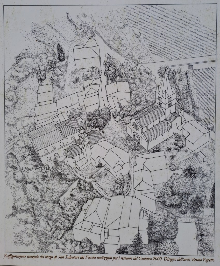 Die Kirche war ein Anziehungspunkt für die Pilger auf der Via Francigena nach Rom. Am 14. Dezember 1880 gewährte Papst Leo XIII. den Gläubigen, die in der Woche vom 14. bis 21. September nach der Beichte und der Kommunion die Basilika besuchten, einen vollkommenen Ablass. Unter den Werken und Reliquien, die in der Basilika aufbewahrt werden, sind die in einem Kristallschrein eingeschlossenen Fragmente des wahren Kreuzes, an dem Jesus gekreuzigt wurde, von großem Wert, die von Papst Hadrian V. in die Kirche gebracht wurden. – „Wikipedia“
