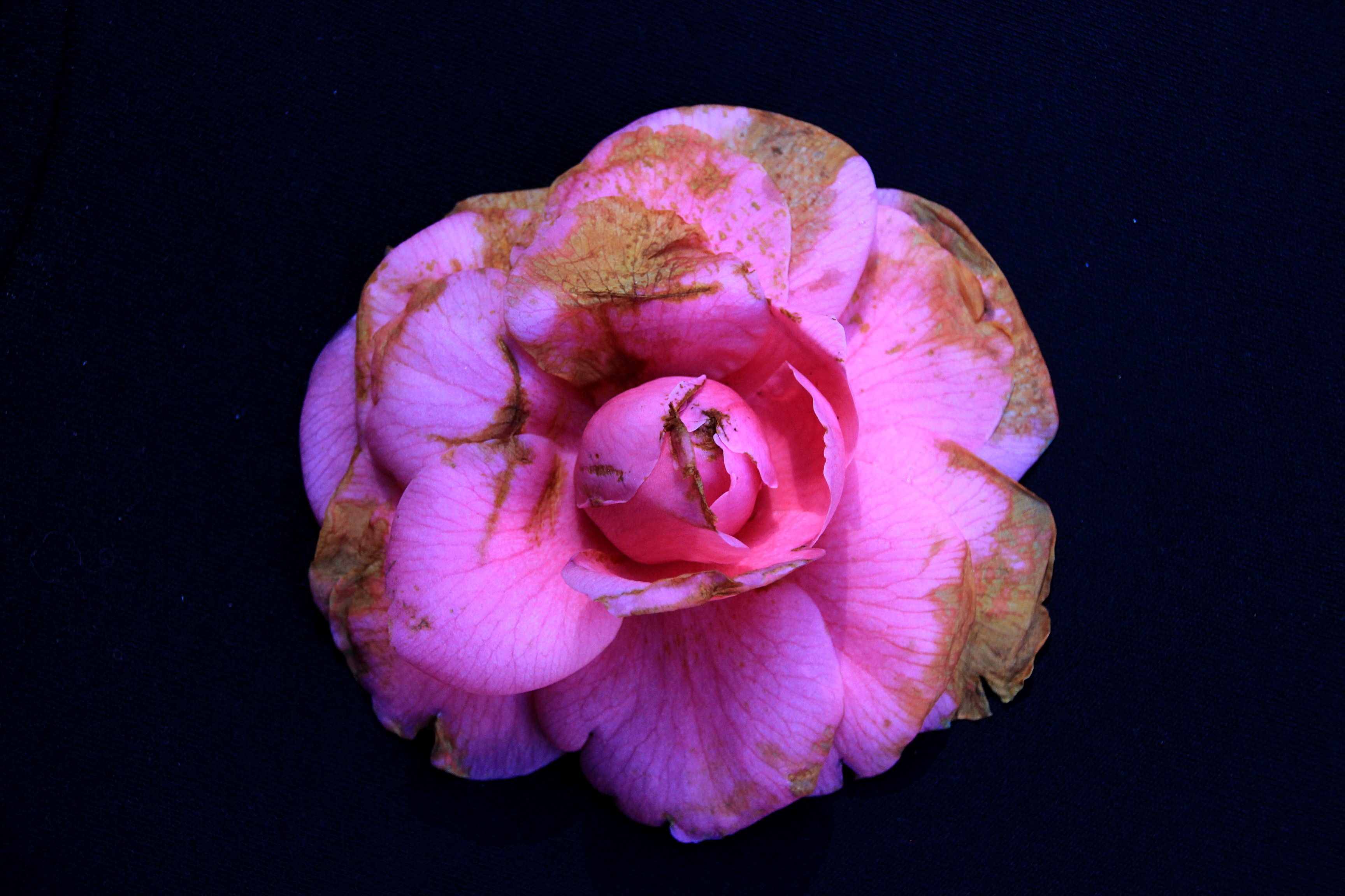 Nachdem uns die Kamelie schon im Winter mit leuchtenden Blüten erfreut, so zeigt sich noch im Absterben die Schönheit der „camellia japonica“