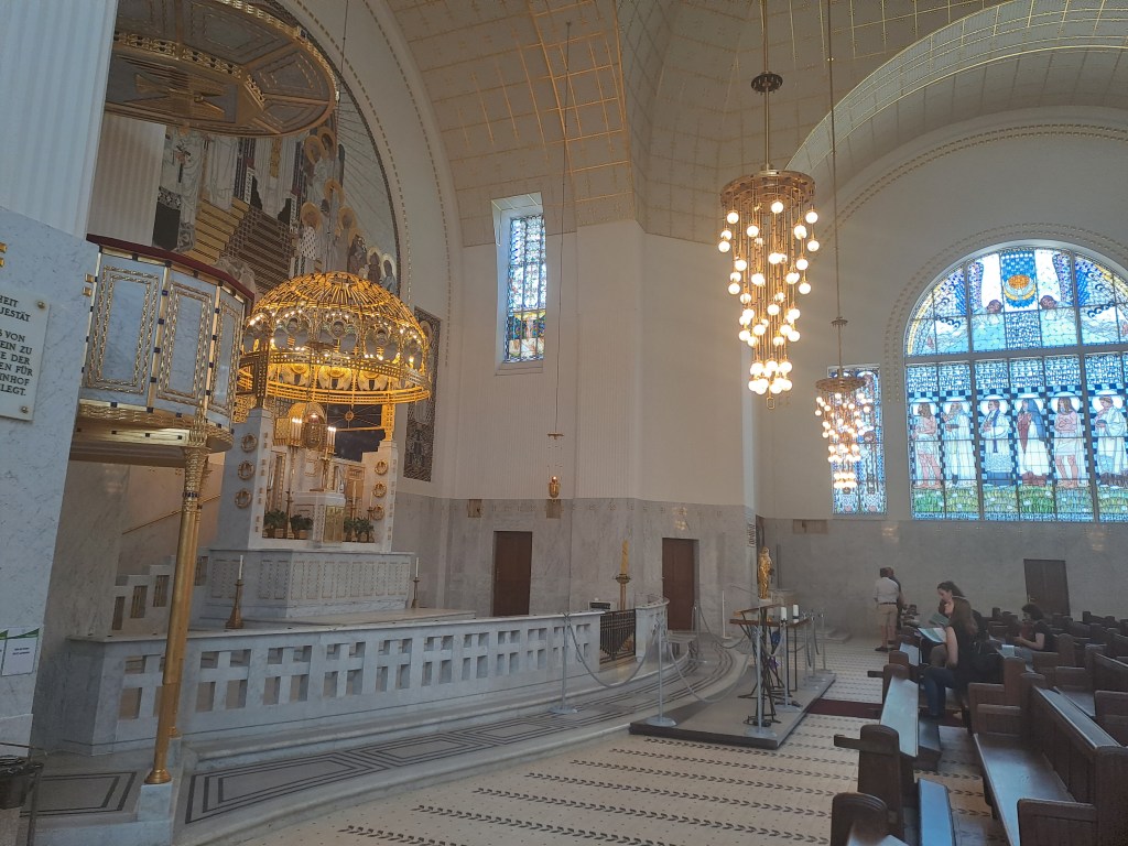 Mitten im Grüngebiet von der Stadt Wien steht die „Kirche am Steinhof“ 1907 nach den Plänen von Otto Wagner erbaut. Ein Besuch……